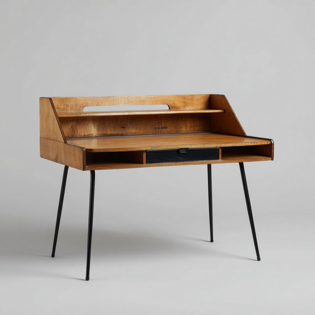 Bureau rectangulaire avec plateau et tiroirs en bois massif