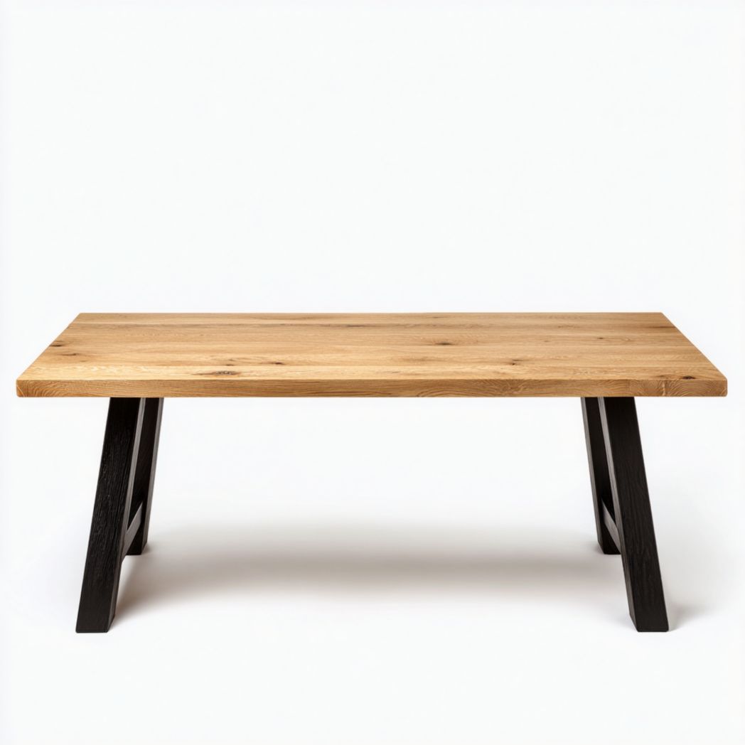 Bureau rectangulaire avec plateau en bois massif et piètement en bois massif
