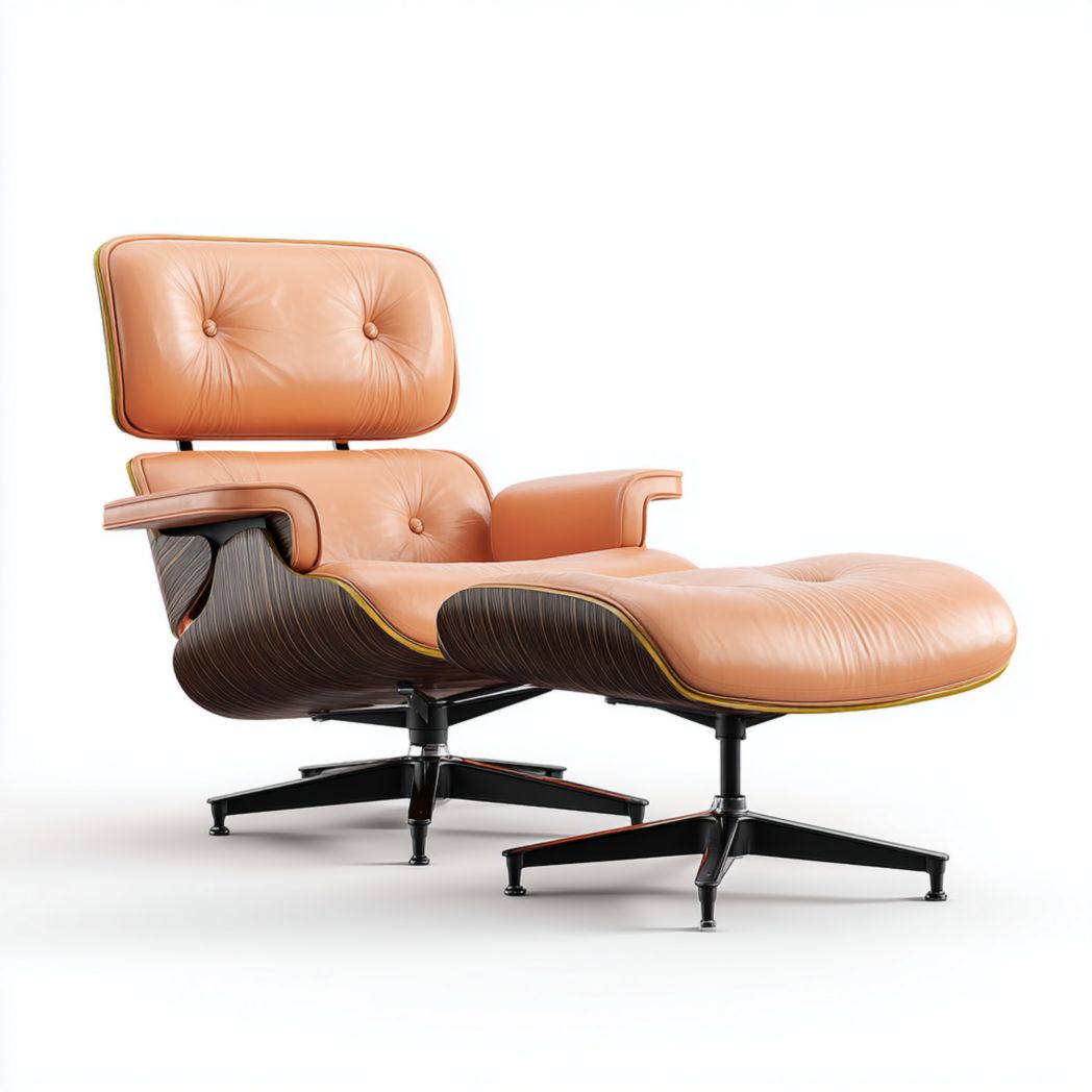Fauteuil de Salon avec Repose-pieds en Cuir Cognac et Bois Courbé
