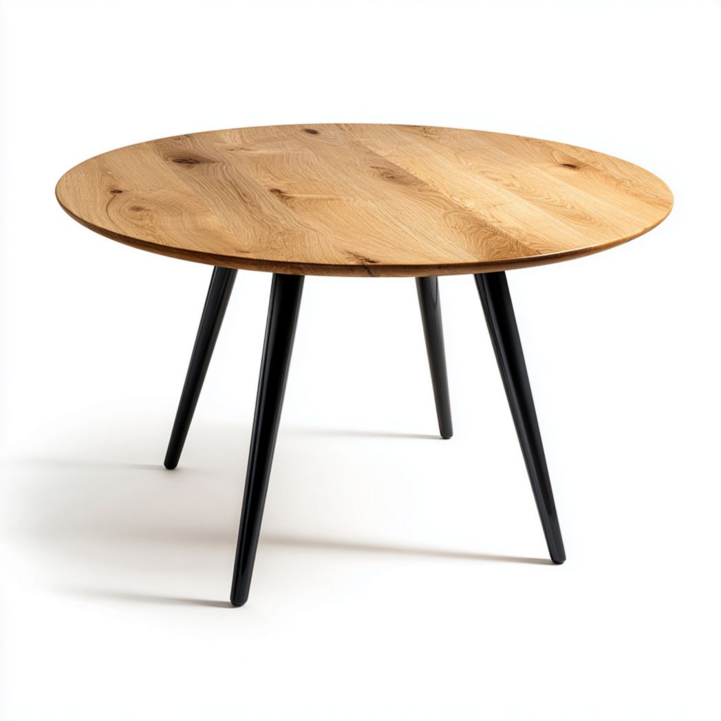 Table de repas ronde en chêne massif avec pieds en acier noir