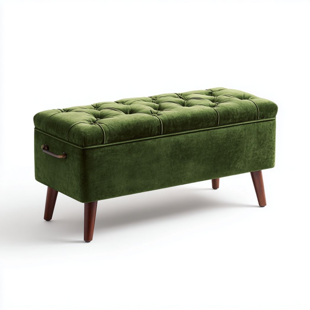 Marque : OEM Matériau : Structure en bois d'hévéa, revêtement en tissu polyester et rembourrage en mousse Couleur : Vert olive et Pieds brun foncé Poids : 12500 g Dimensions : 120 x 45 x 45 cm Garantie : 2 ans